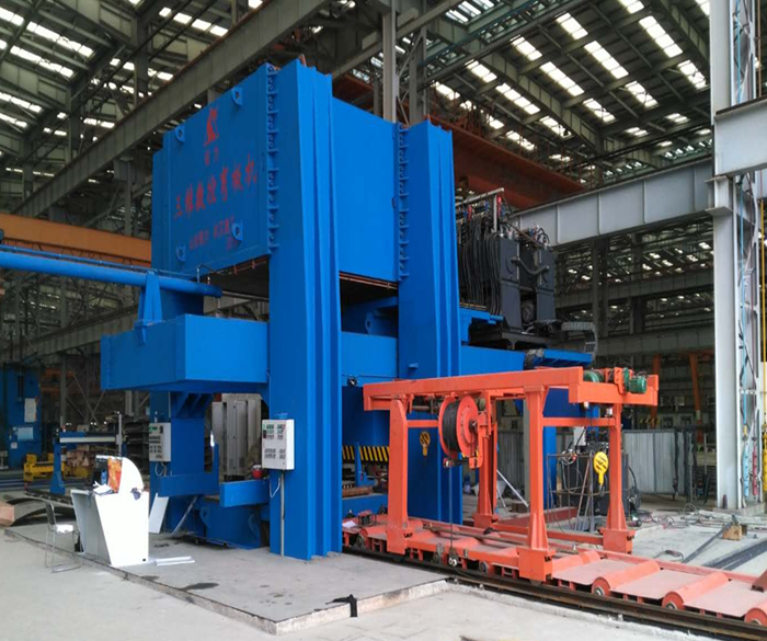 三維數(shù)控彎板機(jī)是專門(mén)用于船體多曲面外板冷加工的自動(dòng)化數(shù)控設(shè)備,適合壓制帆型、馬鞍形等復(fù)雜雙曲度船體外板。設(shè)備配置了專門(mén)的數(shù)控系統(tǒng),與常用的造船設(shè)計(jì)軟件具有曲板數(shù)據(jù)轉(zhuǎn)換通訊接口,能根據(jù)讀入的船體外板的形狀、曲率變化、板材長(zhǎng)度、厚度和材料的強(qiáng)度等數(shù)據(jù)自動(dòng)調(diào)整下模的形狀,進(jìn)行彎壓處理。在彎壓過(guò)程中,數(shù)控系統(tǒng)能自己記錄彎板過(guò)程中的回彈量,為后續(xù)壓制板材提供數(shù)據(jù),加工效率高、精度高,可實(shí)現(xiàn)長(zhǎng)時(shí)期連續(xù)自動(dòng)化作業(yè)。主要性能技術(shù)參數(shù)1、加工鋼板的最大屈服強(qiáng)度σs=750 MPa 2、可彎制板材厚度6mm~30mm,板寬0.6m~2m,板長(zhǎng)不限制(托輥送料)3、單張板的最大重量8噸 4、板料輸送速度≥3m/min 5、最大上升高度(距地坪)≥1000mm
